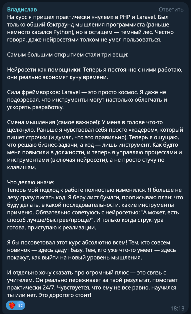 Раньше чувствовал себя просто «кодером». Теперь решаю бизнес-задачи, а код — лишь инструмент.