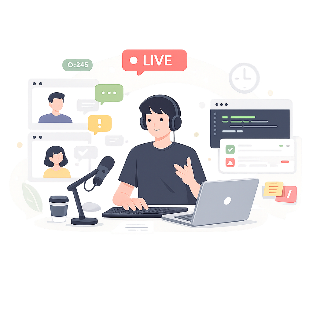 Живые стримы, реальные решения, ошибки и фиксы.